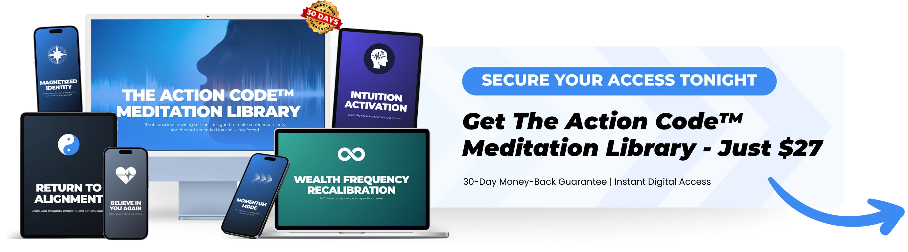 You'll get instant access to all six meditations. You can be listening to the first one within minutes. By tomorrow morning, the rewiring will have already begun.